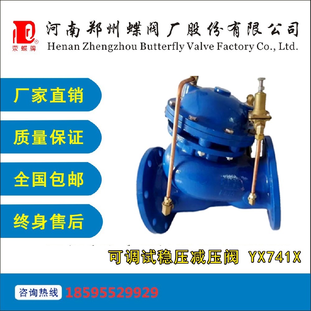 可調(diào)減壓穩(wěn)壓閥由主閥和針形調(diào)節(jié)閥、導(dǎo)閥、球閥和接管系統(tǒng)組成。主閥體采用全通道、DC和流線